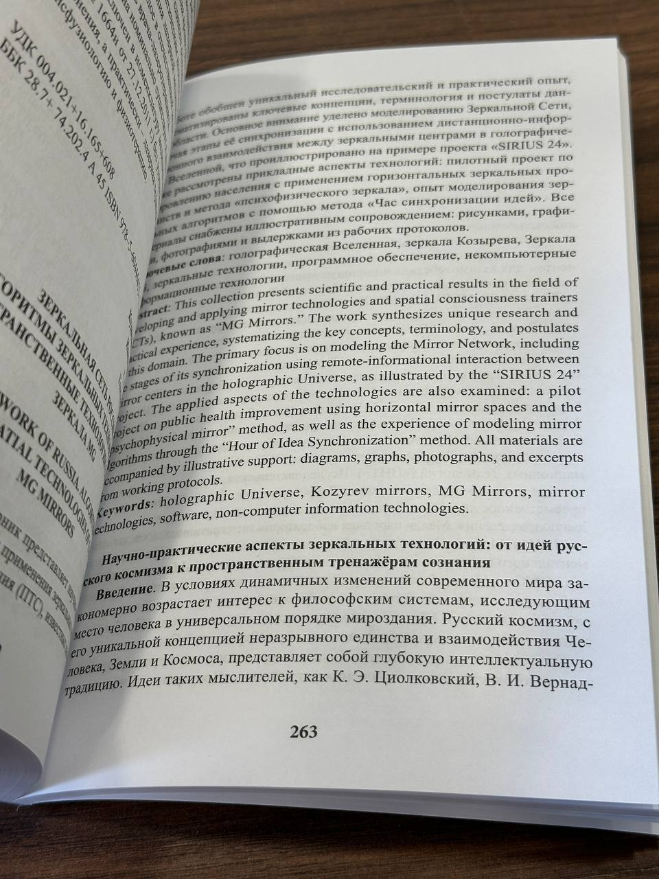 Abstract: This collection presents scientific and practical results in the field of developing and applying mirror technologies and spatial consciousness trainers (SCTs), known as "MG Mirrors." The work synthesizes unique research and practical experience, systematizing the key concepts, terminology, and postulates of this domain. The primary focus is on modeling the Mirror Network, including the stages of its synchronization using remote-informational interaction between mirror centers in the holographic Universe, as illustrated by the "SIRIUS 24" project. The applied aspects of the technologies are also examined: a pilot project on public health improvement using horizontal mirror spaces and the "psychophysical mirror" method, as well as the experience of modeling mirror algorithms through the "Hour of Idea Synchronization" method. All materials are accompanied by illustrative support: diagrams, graphs, photographs, and excerpts from working protocols.