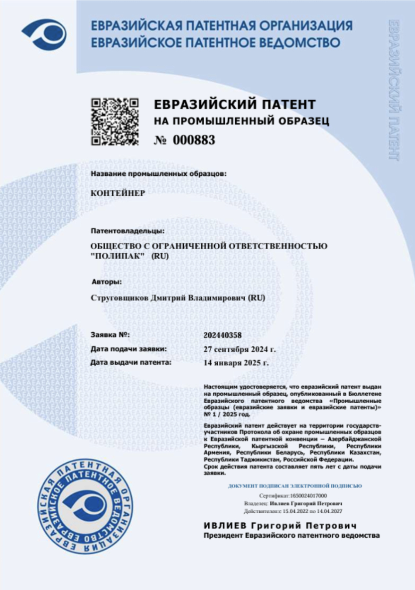 Результат: все заявки были одобрены, и «ПОЛИПАК» получила патенты, обеспечив себе монопольное право на выпуск контейнеров. Это открыло компании новые возможности для роста и укрепило позиции на рынке.