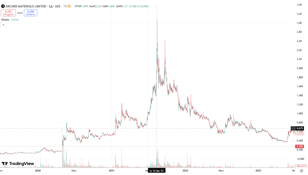В сентябре 2021 года австралийская компания Archer Materials получила патент США на свою разработку — CQ-чип для квантовых вычислений. На фоне этой новости акции компании взлетели на 9%.