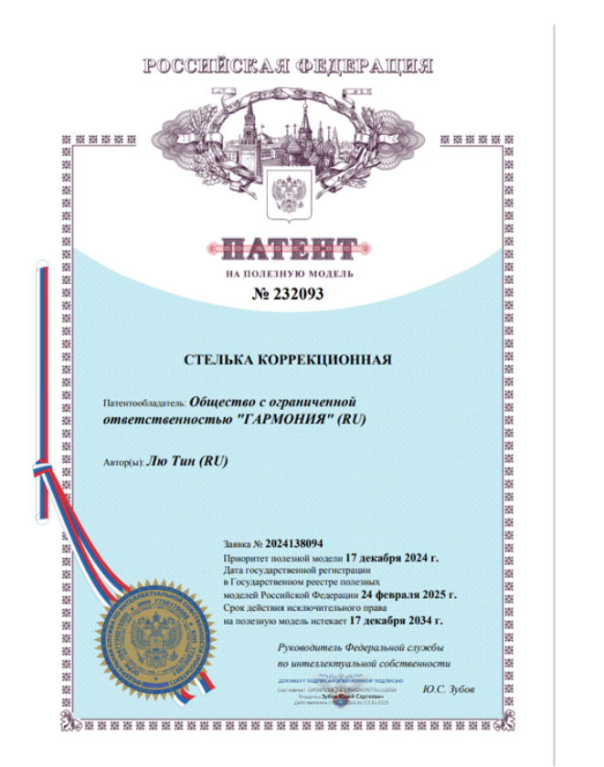 Компания «Гармония» обратилась к нам с идеей корректирующей стельки и прибора для физиотерапии. Изначально шансы на патентование были минимальны — формулировки были расплывчаты, а отличия от аналогов — слабо выражены.