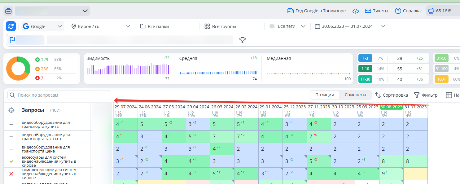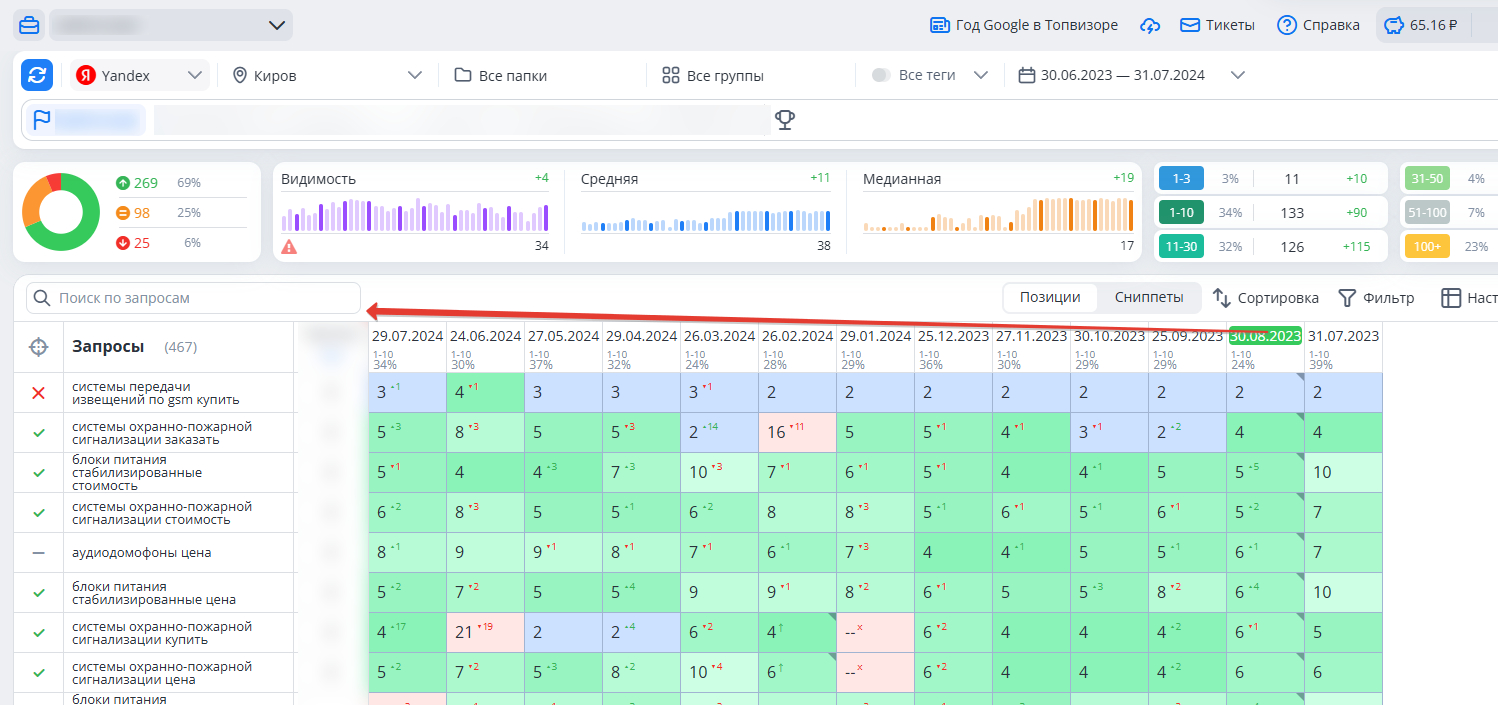 - вернуть позиции в поиске