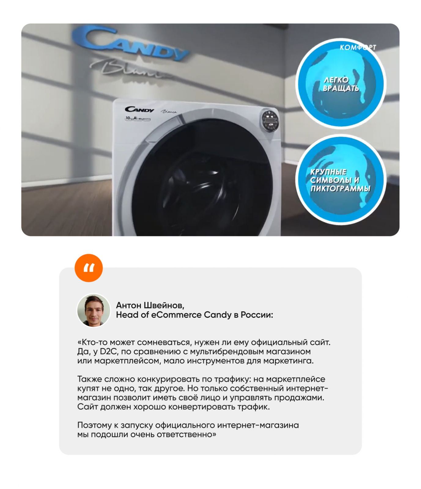 Представитель Candy не занимался решением таких проблем, но отмечал, что продажи через маркетплейсы стремительно растут. Было решено полностью передать их в наши руки, а официальный интернет-магазин — в управление Candy.