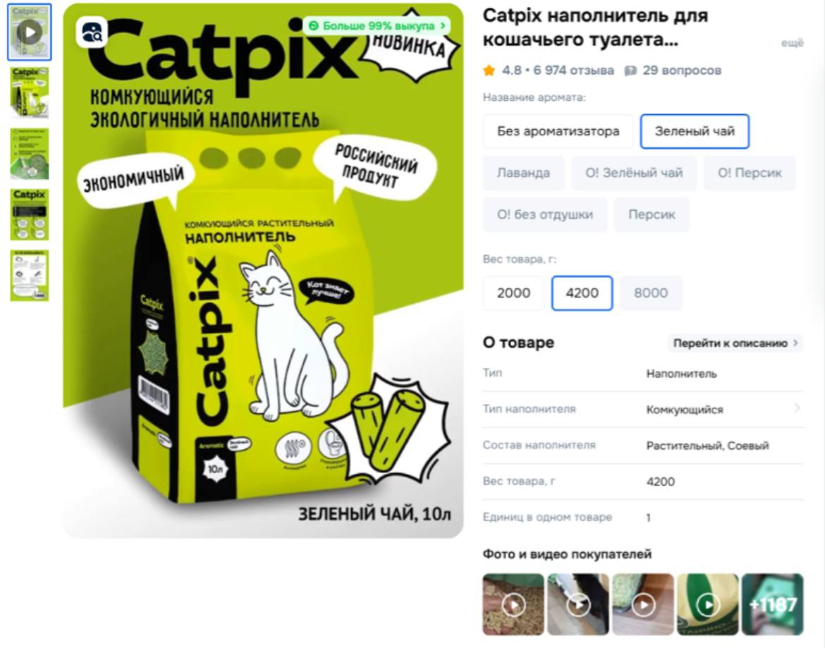 На маркетплейсах у наполнителя CATPIX сотни отзывов. Средняя оценка — 4,8 из 5 на Озон (более 6000 оценок). Вот что пишут покупатели: