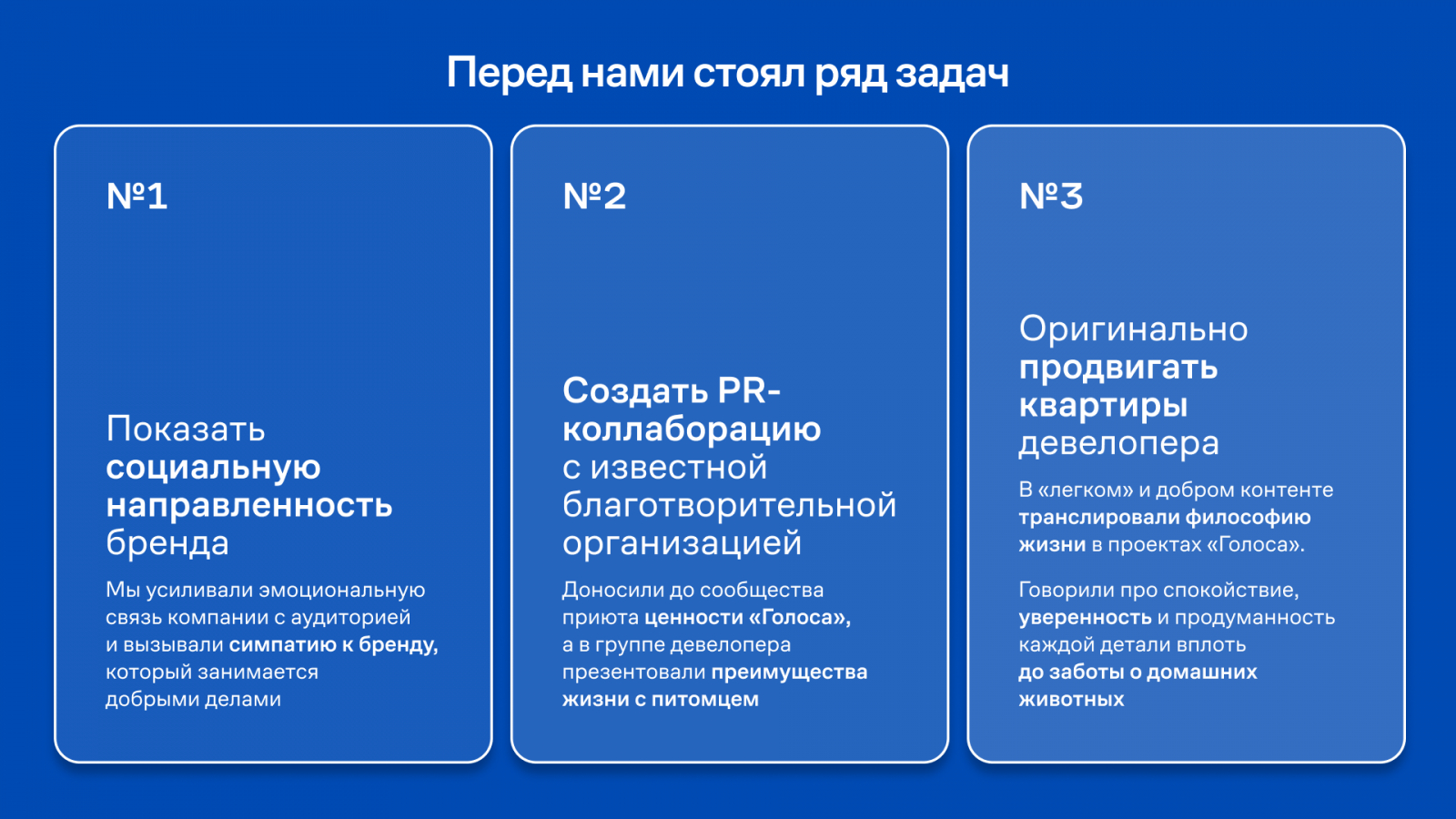 Словом, разговор о питомцах мы превратили в особую связь с подписчиками. Они стали воспринимать публикации «Группы Голос» как беседу с добрым и заботливым другом. Это стало развитием коммуникации между девелопером и покупателем.