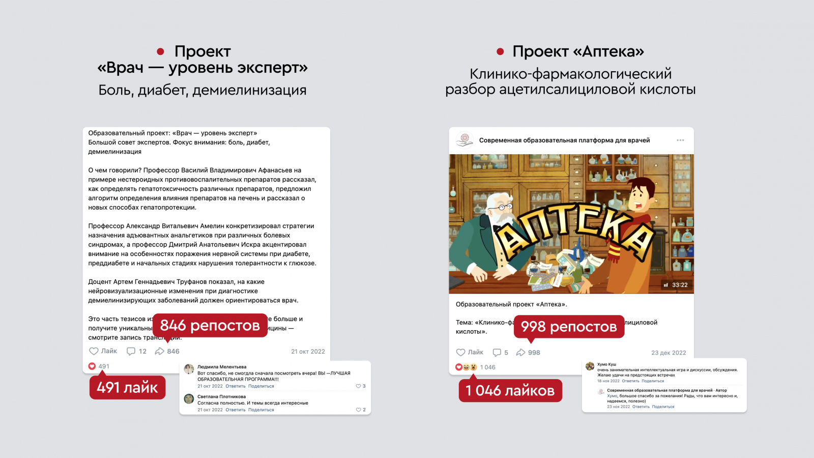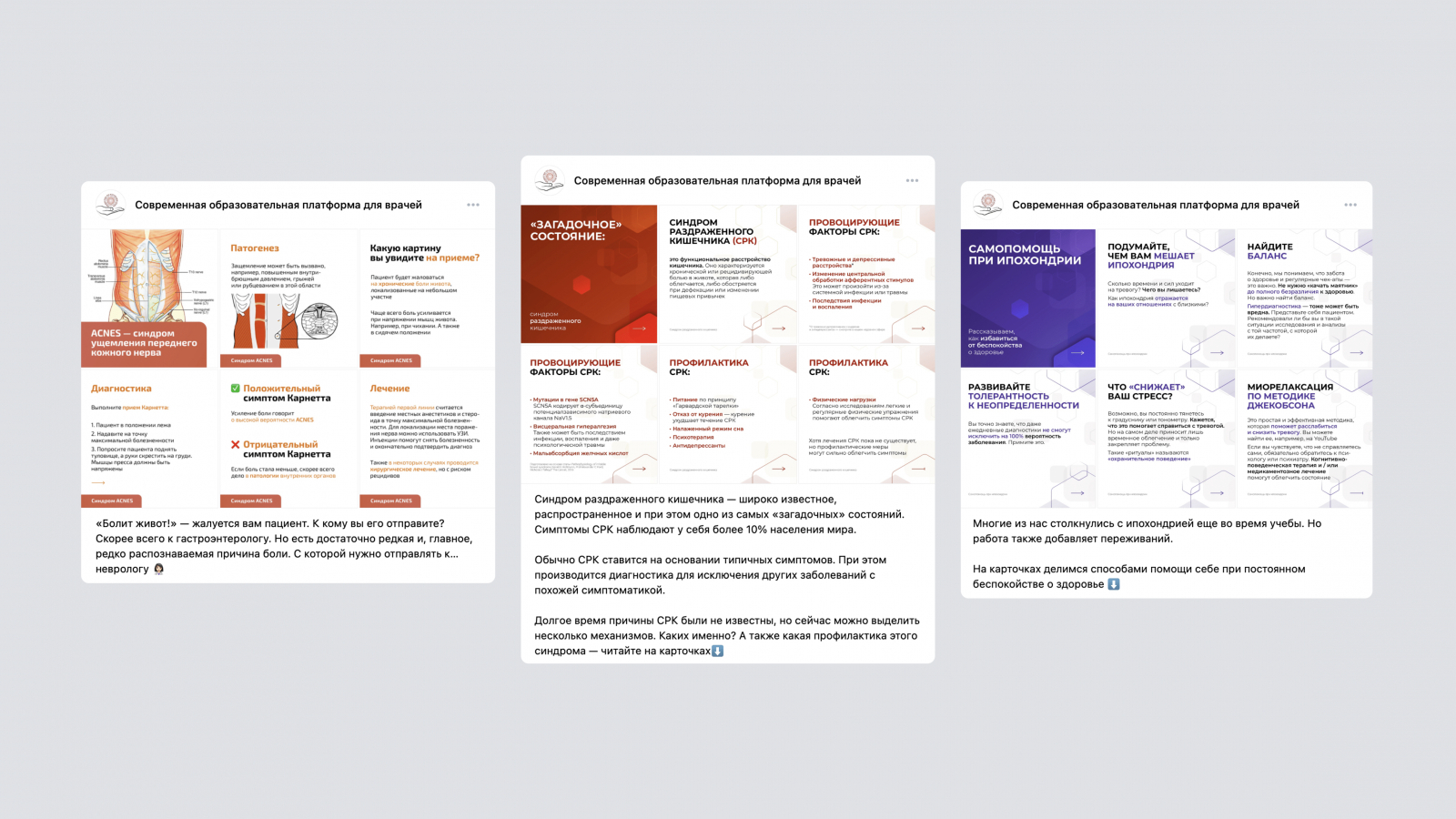 Каждый пост стал небольшим выступлением перед коллегами, которых объединяют общие интересы — наука и медицина. Мы подчеркивали отношение к аудитории «на равных», собирали консилиумы и дискуссии на темы, которые важны для всех.