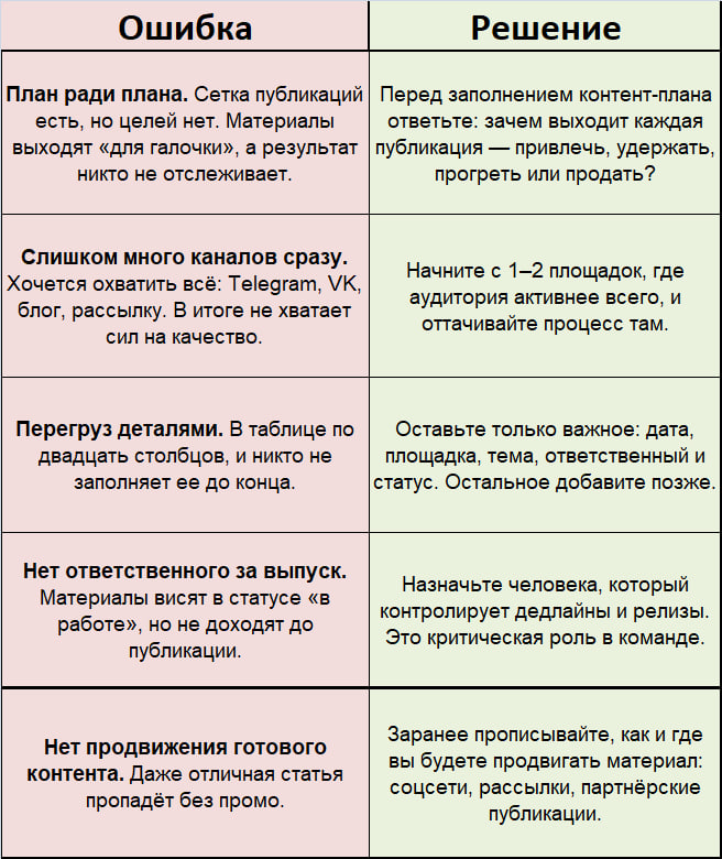 Даже самый подробный контент-план не спасёт, если его составляют формально. Ниже — типичные ошибки, из-за которых план перестаёт работать, и что с этим делать.