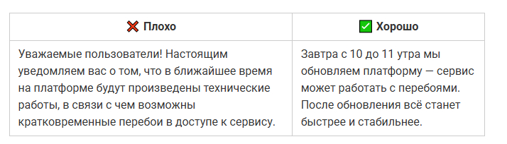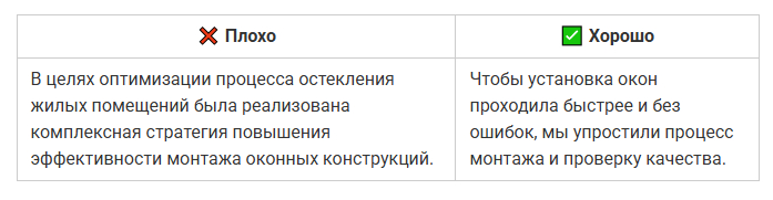 ✅ Совет: если предложение звучит так, как никто не говорит в реальной жизни, перепишите. Канцелярит — главный враг доверия.