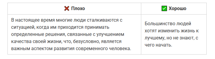✅ Без воды и лишних слов. Если убрать фразу и смысл не изменился — удаляем.