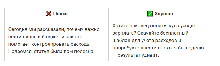 ✅ Ясная цель и действие в конце. Читатель поймет, что делать после прочтения: скачать, попробовать, записаться, задуматься.
