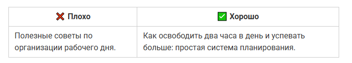 Во втором случае читатель сразу понимает, о чём пойдёт речь, он видит пользу для себя.