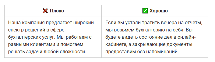 ✅ Совет: заменяйте «мы» на «вы». Каждый абзац должен отвечать на вопрос читателя: «Что я от этого получу?»
