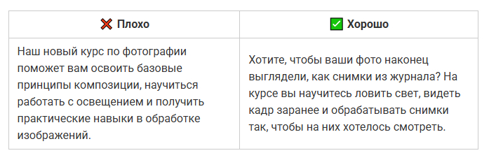 Во втором случае фокус смещен с компании на человека. Читатель видит выгоду для себя, а не заслуги бренда.