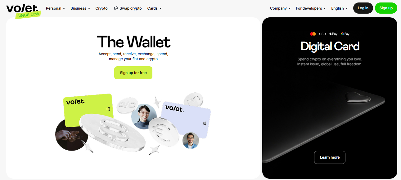 Volet — платформа-«комбайн» из кошелька, криптобаланса и моментальных Visa/Mastercard. Карта появляется за минуту, а деньги перекатываются между фиатом и криптой без лишних плясок.
