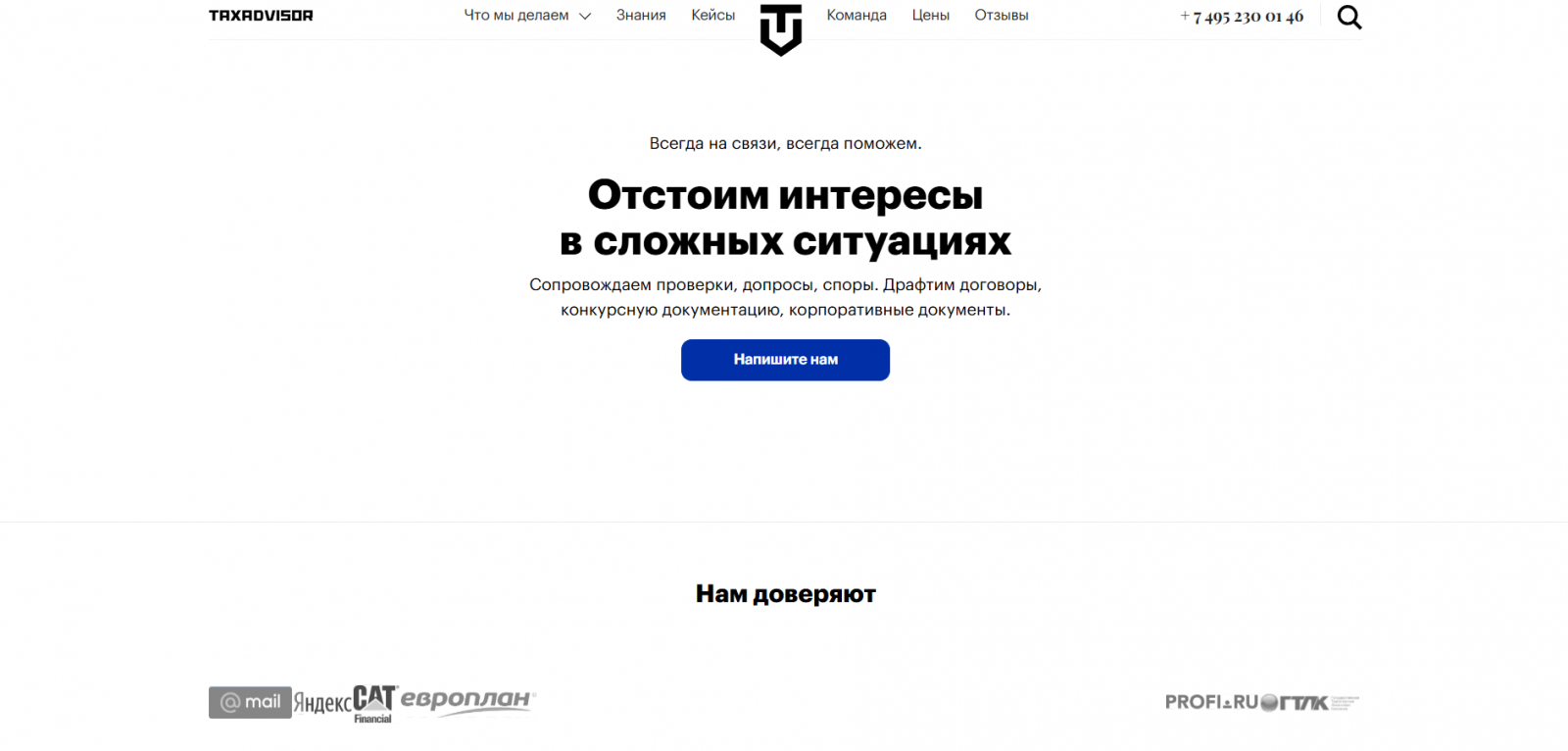 Почему выбрать? Компания ориентирована на крупный и средний бизнес, предлагая комплексные решения для снижения налоговой нагрузки и управления рисками.