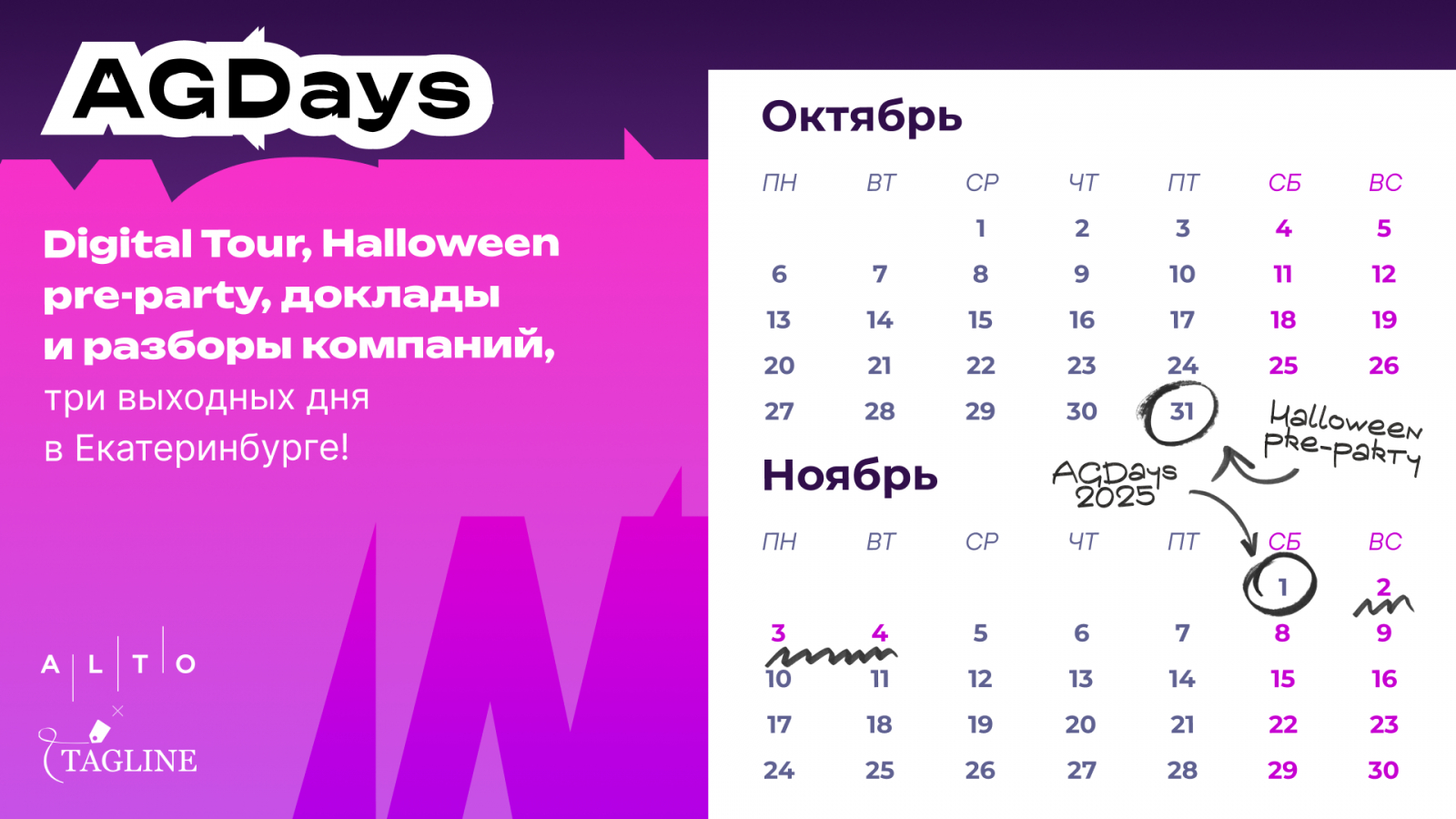 Церемония награждения станет частью конференции AGDays — главного осеннего события для руководителей IT, ecommerce и digital-индустрии. В программе образование и активный нетворкинг: доклады, разборы компаний, офис-туры, вечеринка и уральская баня.