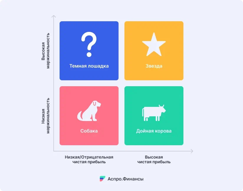 Смотрите на два показателя — маржинальность и чистую прибыль — и классифицируйте направления: