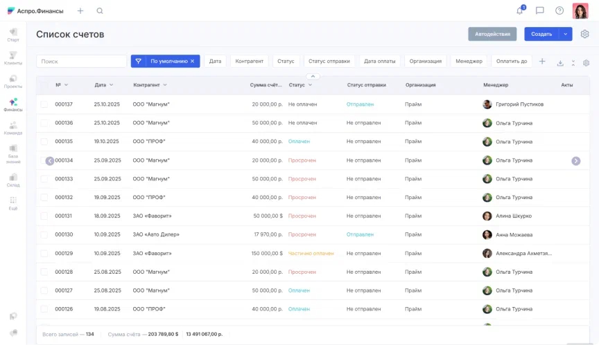 Автоматизация объединяет все методы управления финансами в одной системе. Руководители и сотрудники видят картину целиком: денежные потоки, прибыль, затраты и обязательства компании — в одном окне.