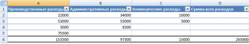 Отчеты ПиУ и ДДС — табличные формы, поэтому их можно оформить в Excel. Но учет доходов и расходов придется вести отдельно. Создайте таблицу с несколькими столбцами — так можно сразу делить все поступления и списания со счетов на статьи, а потом определять их сумму. К примеру: