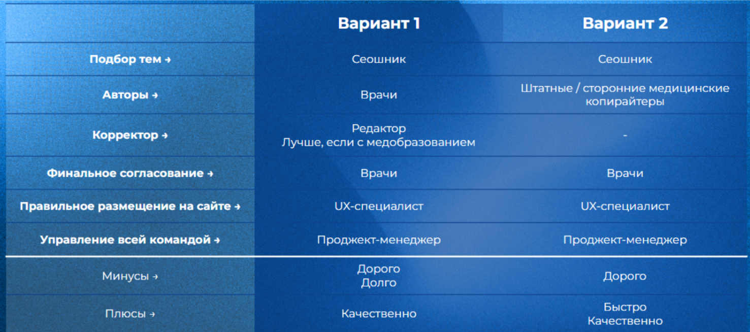 А медицинский контент почему-то одним копирайтером делаться может (нет).