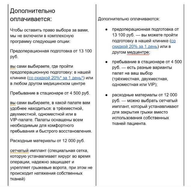 Чтобы стало понятно, о чем речь, сравните два текста. Первый написан врачом, второй — переписан медицинским копирайтером: