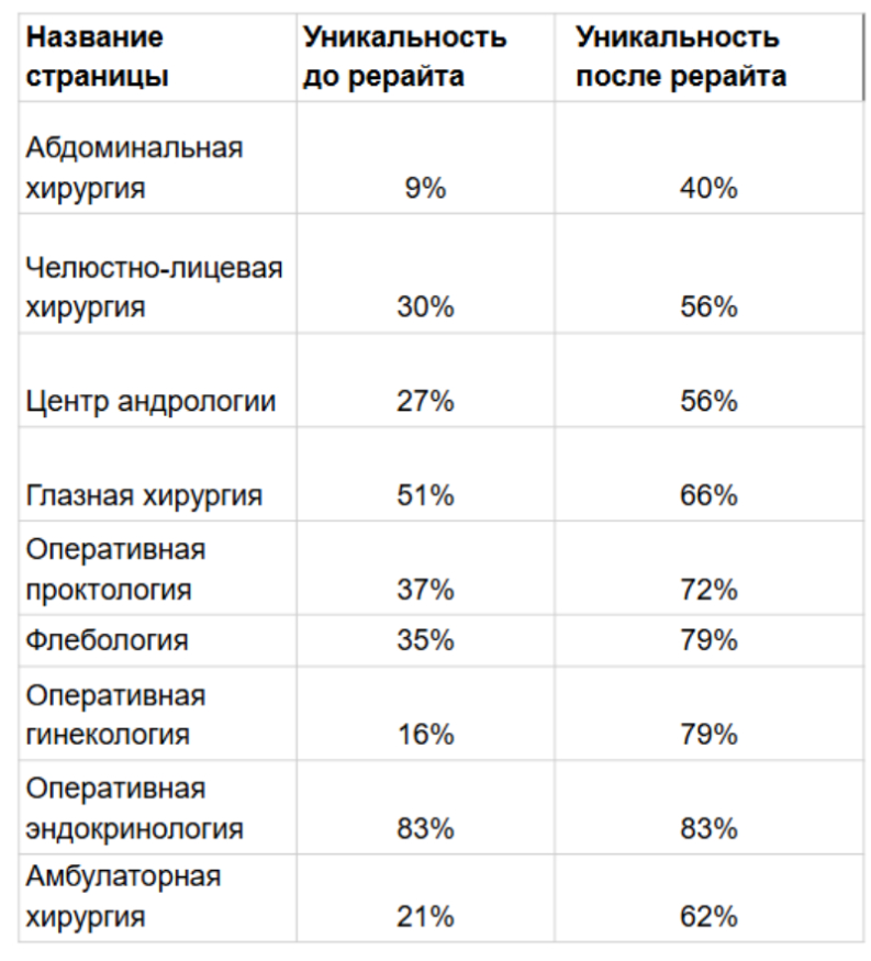 В медицине смысл важнее уникальности. Тексты в первую очередь должны быть понятными, соответствовать клиническим рекомендациям и подходу клиники. Но часто от копирайтеров требуют уникальность от 80%, а в медицине так вряд ли получится. Тезис подтверждает сервис «Антиплагиат» Advego: