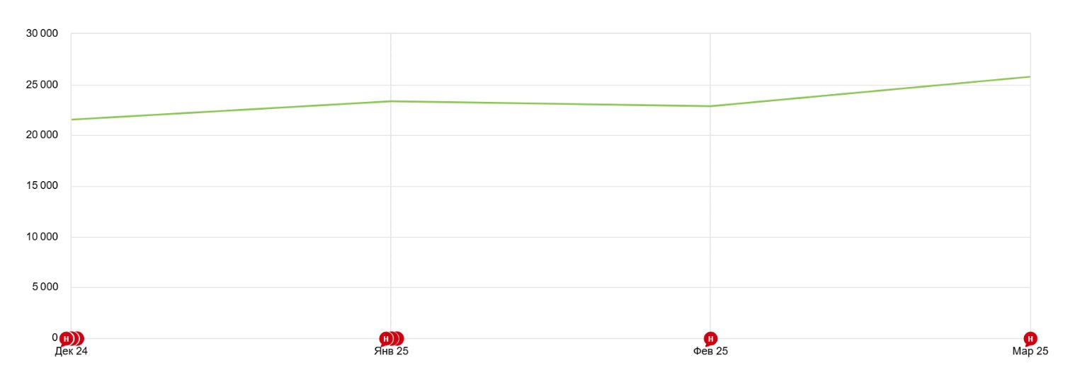 >25 000 визитов — исторический максимум для этой группы страниц.