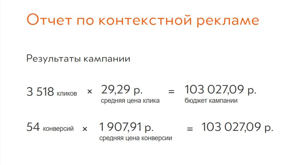 Первый клиент — многопрофильная клиника. Мы рекламируем только 10 направлений. Вот кусочек отчета по контекстной рекламе: