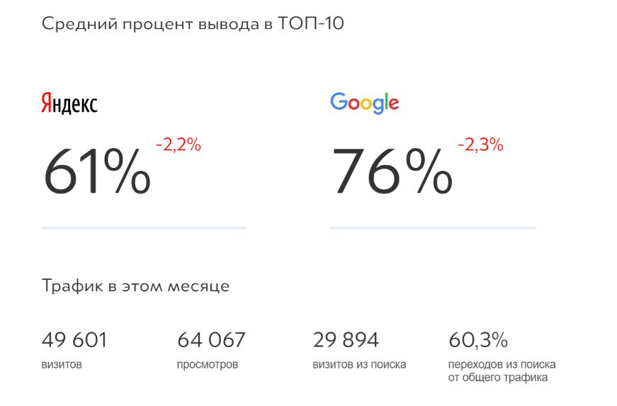 Запомним цену клика в ~29 ₽.Теперь возьмем второго клиента и отчет по его проекту с результатами SEO: