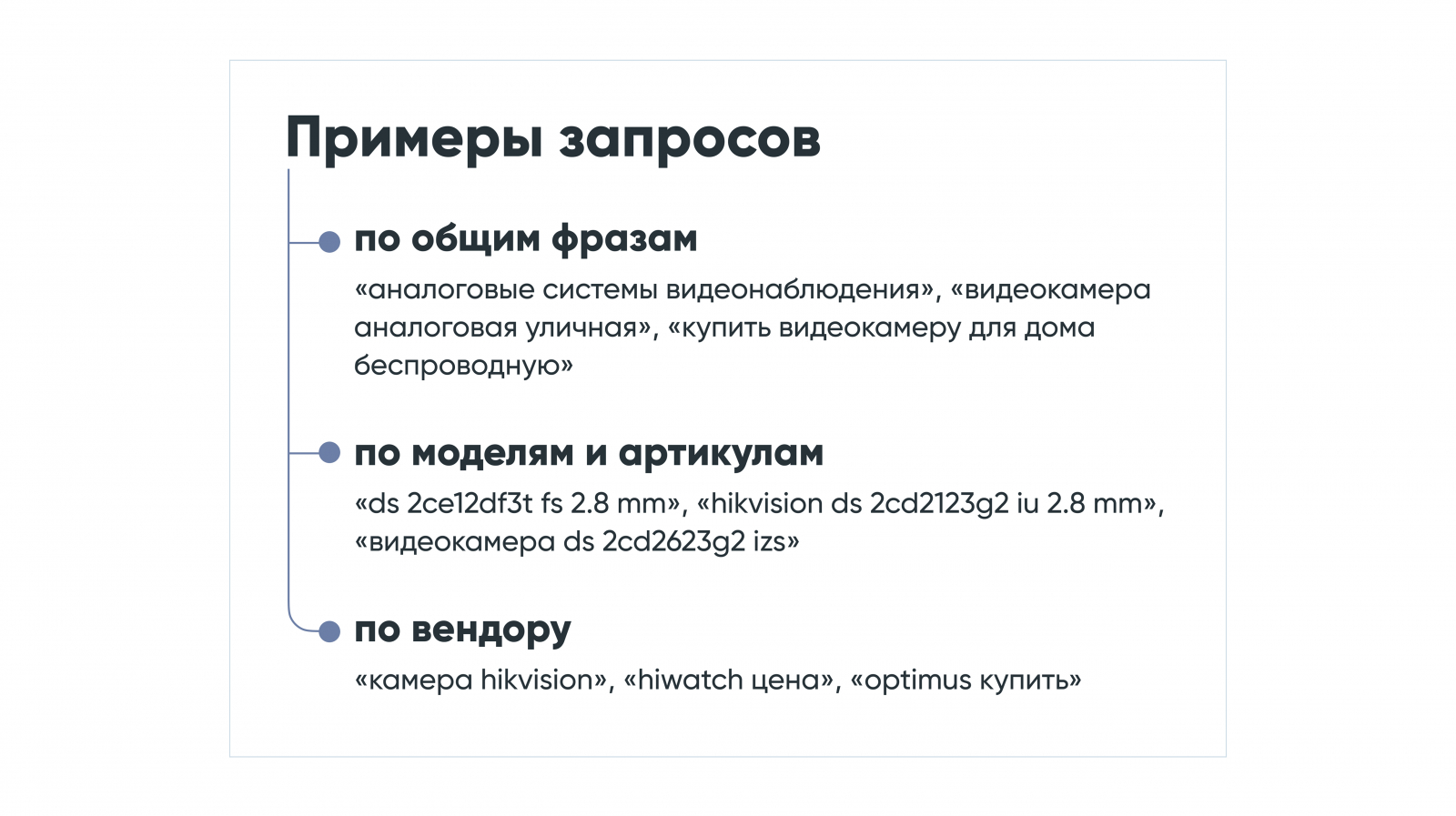 Покупатели техники для видеонаблюдения ищут товары по трём типам фраз: