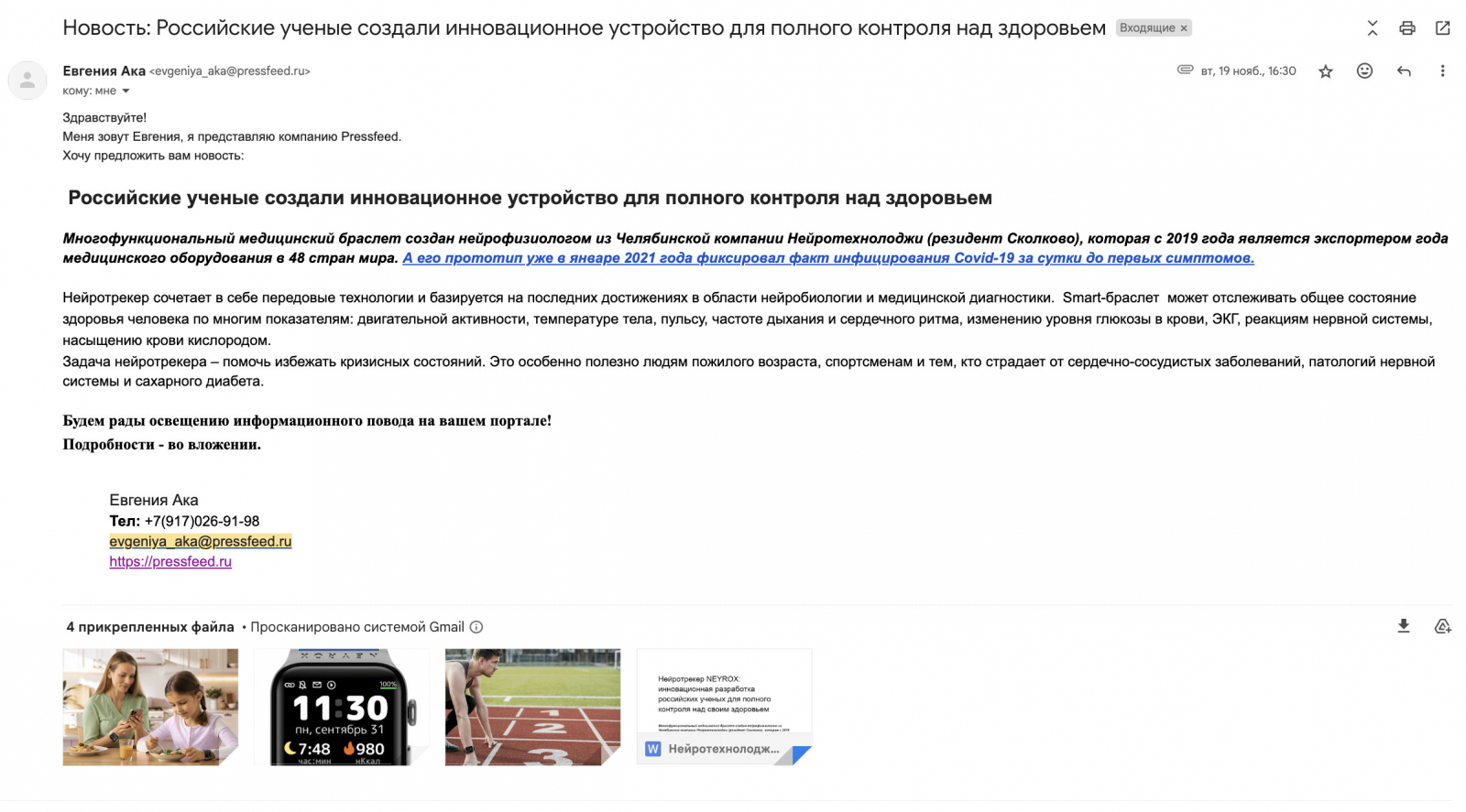 Например, в кейсе Neurotechnology релиз о запуске новой технологии попал сразу в ряд федеральных изданий — ключевую роль сыграли правильная «упаковка» новости и адресная отправка по релевантным журналистам (охват — порядка 15 000 контактов).