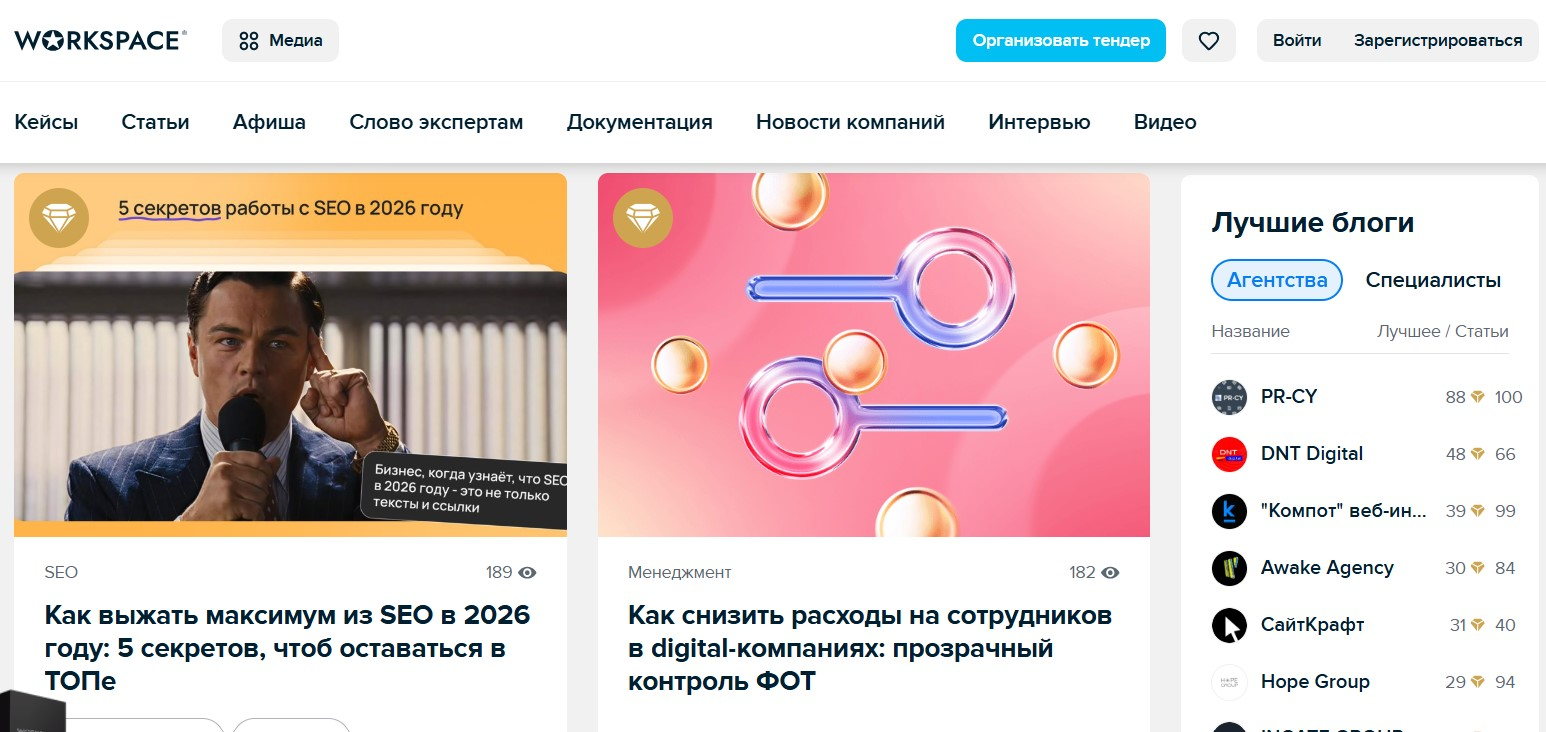 Workspace — медиа от биржи фриланса FL.ru с широкой бизнес-тематикой. Здесь пишут о фрилансе, диджитале, удаленной работе и предпринимательстве. Модерации нет, на сайт можно разместить статью со ссылками на ваши ресурсы без ограничений.
