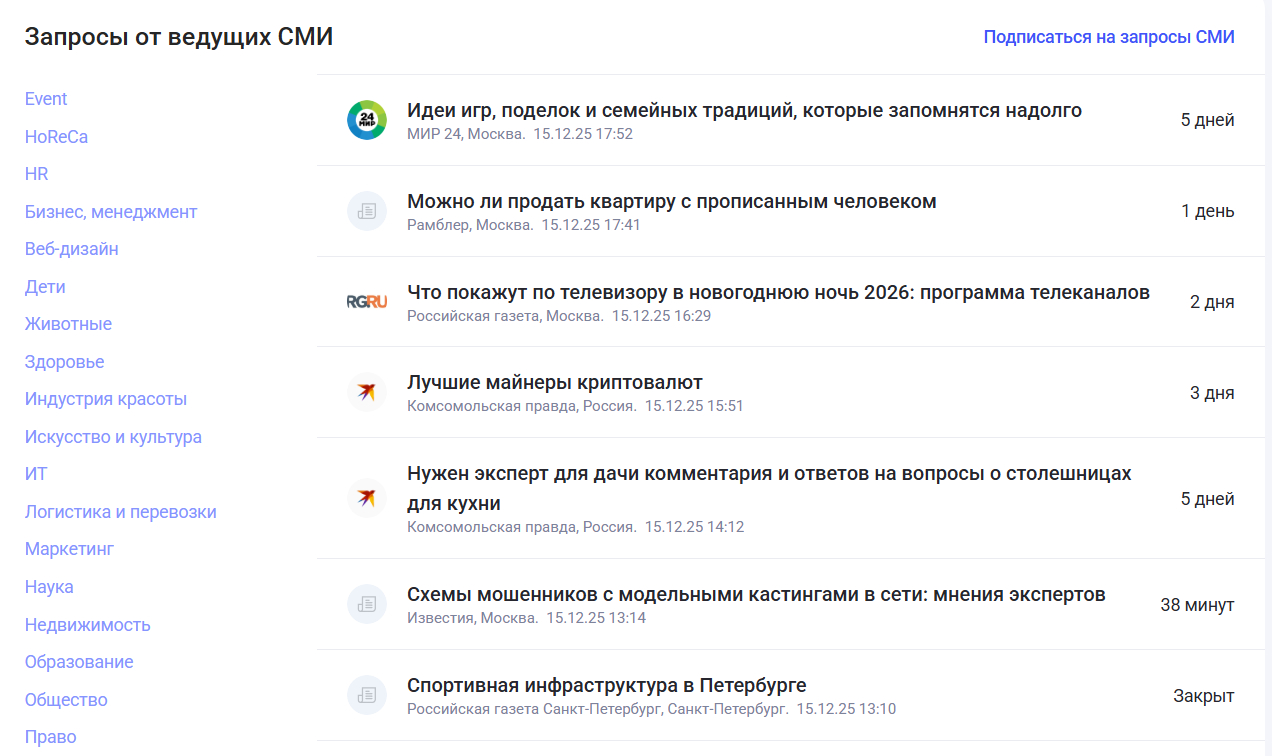 Если нет времени писать большие статьи и договариваться с редакциями, можно начать с комментариев для СМИ. Редакции ищут экспертов для кратких разборов и советов — это быстрее, чем полноценная публикация. А попасть можно как в отраслевые СМИ, так и в федеральные медиа уровня РБК и Ведомостей.