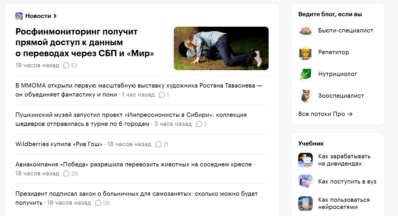 РБК — крупнейшее деловое медиа в России с миллионной аудиторией. Попасть сюда можно не только через платные форматы. Редакция регулярно ищет экспертов для комментариев, аналитики и кратких разборов через журналистские запросы. В таких публикациях важно дать содержательный ответ по теме — реклама и самопродвижение здесь не проходят.