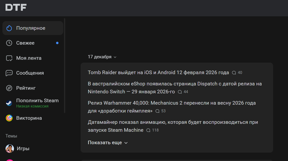 DTF — крупная российская площадка про цифровую культуру, игры, технологии и медиа, где публикуют колонки, аналитические тексты и кейсы, в том числе по бизнес‑темам, связанным с IT и диджиталом.