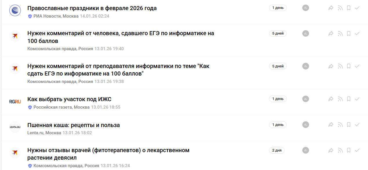 Журналисты размещают запросы на фактуру, комментарии и кейсы на Pressfeed. Эксперты и пиарщики выбирают подходящие темы и отвечают прямо в сервисе. Автор отбирает удачные ответы и использует их в материале. В итоге компания и спикер получают упоминание в СМИ без оплаты.