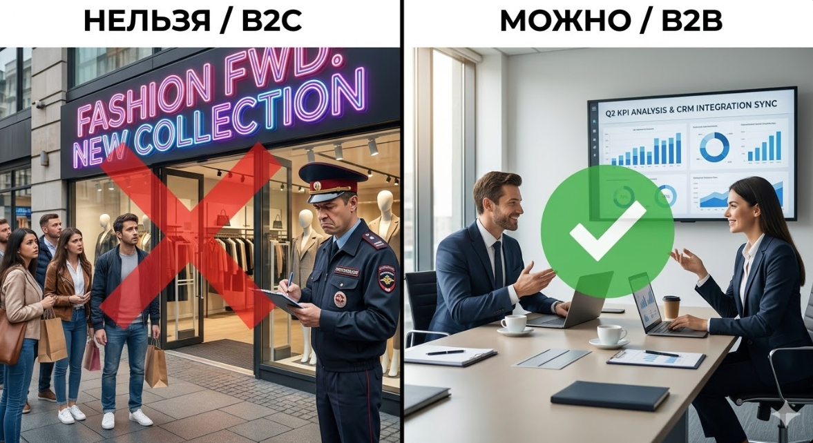 Но будьте очень осторожны с форматами на стыке двух аудиторий. Юристы предлагают рассмотреть пример с платной конференцией. Билеты на неё часто покупают компании для своих сотрудников — это формат бизнес для бизнеса. Но на ту же самую конференцию билет может купить и обычный человек с улицы. Как только в цепочке контрагентов появляется физическое лицо в статусе потребителя, вы автоматически попадаете под действие закона. Вся информация о таком мероприятии должна полностью соответствовать новым нормам. То же самое правило действует для салонов красоты. Вы не можете повесить английскую вывеску и сказать инспектору, что вы обслуживаете только корпоративных клиентов, если по факту к вам может зайти любой прохожий с улицы.