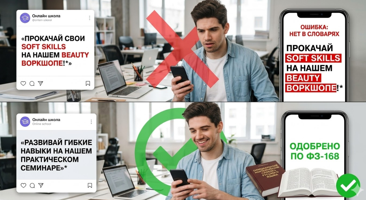 Десятилетиями латиница была бесплатным дизайнером для любого бизнеса: стоило написать англицизм вместо «Открыто», и вывеска тут же начинала выглядеть чуть бодрее. Но с 1 марта правила игры изменились, в силу вступил ФЗ №168, и теперь иностранные слова в рекламе и коммерческой информации могут стать поводом для проверок, а запрет на англицизмы с 1 марта заставляет маркетологов срочно искать замену привычным терминам.. Латиница официально вышла из моды на государственном уровне — теперь русский язык стал главным везде: от вывесок на дверях до кнопок в мобильных приложениях и тем в ваших рассылках.