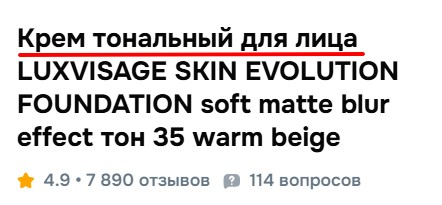 Не забываем вписать в заголовок карточки товара релевантное ключевое слово.