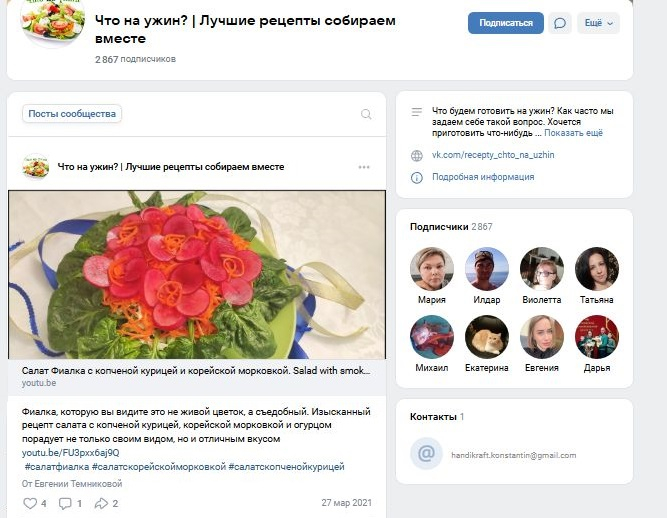 Еще один пример на скриншоте: группа во «ВКонтакте» не обновлялась уже 4 года, но до сих пор находится на первых позициях в выдаче по запросу «Что приготовить на ужин?».