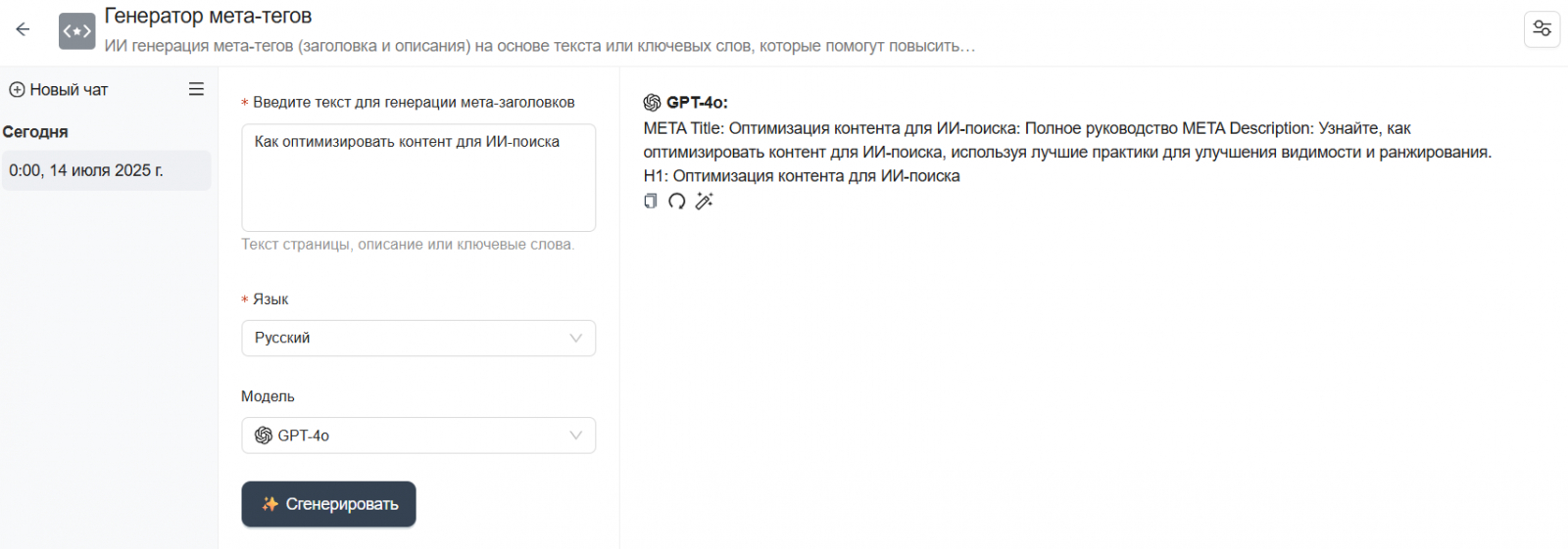Генератор мета-тегов поможет вам сделать заголовок и описание для страницы с помощью искусственного интеллекта.