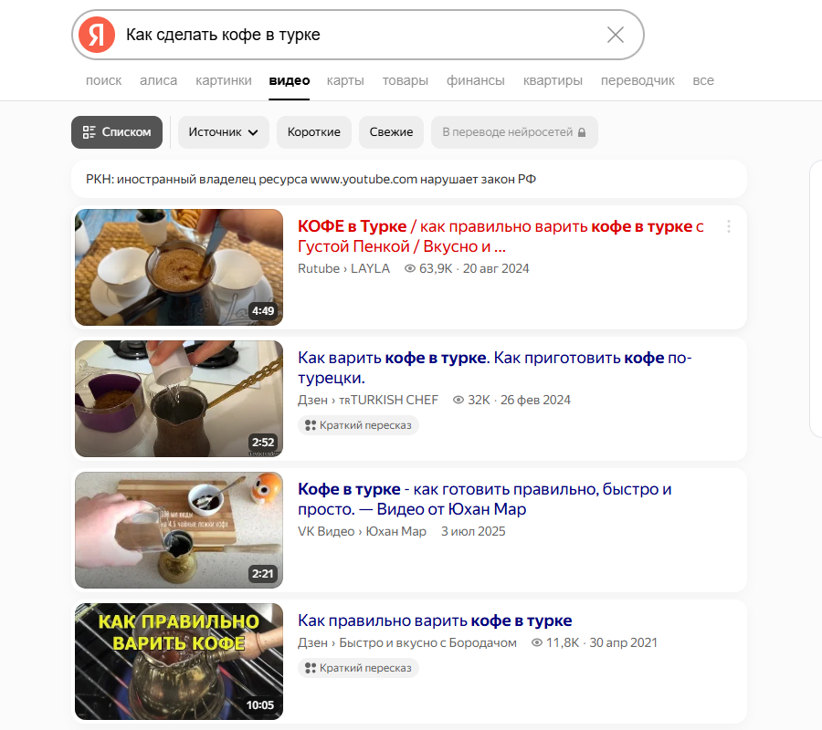 Добавляйте текстовую расшифровку под каждое видео или аудио. Это поможет поисковикам понять, о чем ваш ролик, и показать его в ответ на вопрос пользователя. И подписывайте файлы правильно: название видео «IMG2345.mp4» ни о чем не говорит, лучше назвать «как-сделать-кофе-в-турке.mp4».