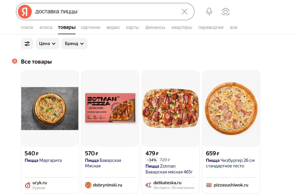 Другой инструмент, который есть и в Яндексе, и в Google — вкладка «Товары». Здесь видны карточки с предложениями от компаний, через которые можно сразу купить интересующие позиции. Чтобы попасть сюда, нужно зарегистрировать аккаунт в Яндекс Товарах или Google Merchant Center и загрузить свой каталог. Оба сервиса бесплатны, но видимость объявлений можно повышать платно.
