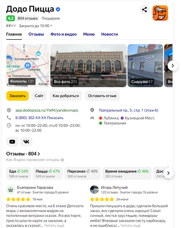 Оцените, насколько заполнены данные — есть ли контакты, схема проезда, фотографии места и комментарии посетителей. Все это создает положительный рейтинг компании. Найдите несколько хорошо оформленных карточек и возьмите их за пример.
