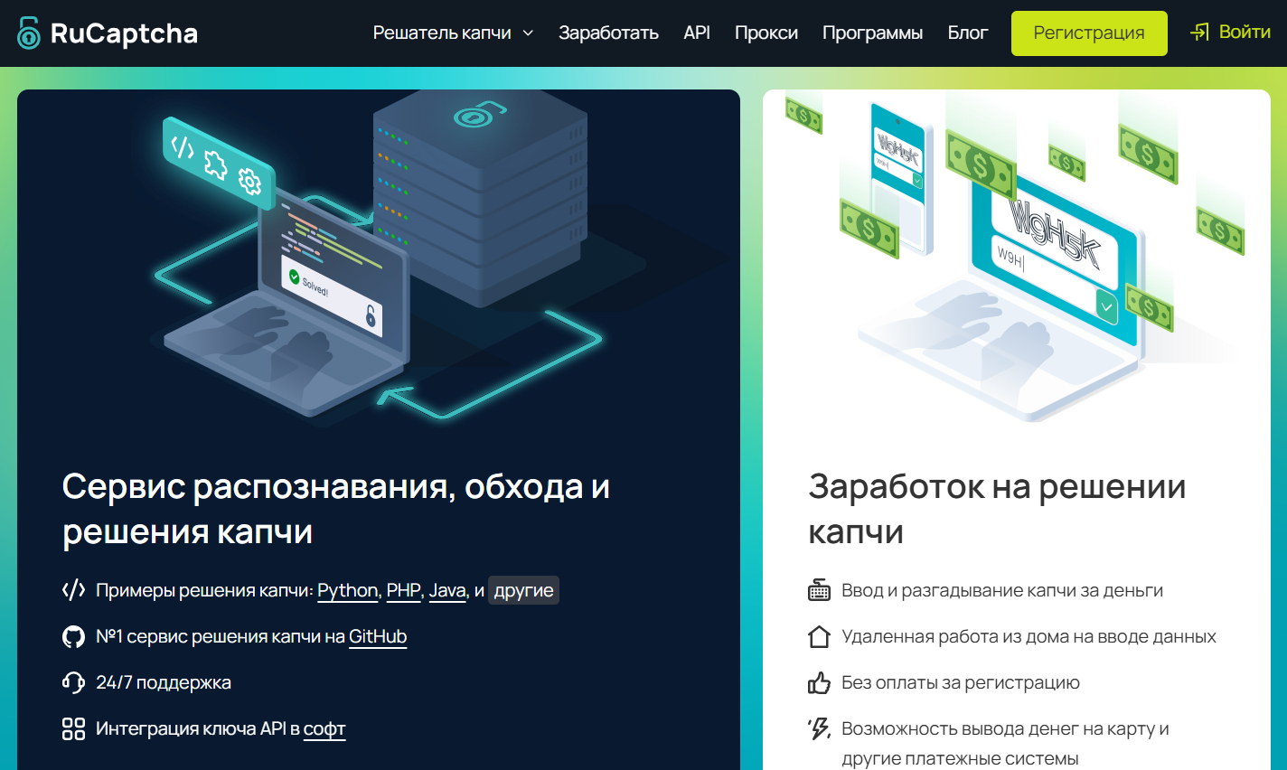 Это автоматизированный сервис для решения таких капч как: recaptcha v2, v3Ю, reCaptcha invisible, HCaptcha, а также капчи изображений. Разработчики заявляют, что капчи проходят любые типы приложений. Недавно была добавлена поддержка Turnstile и SmartCaptcha, мобильный SDK и интеграция через REST и WebSocket.
