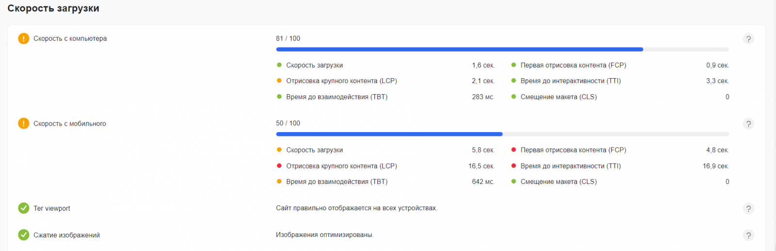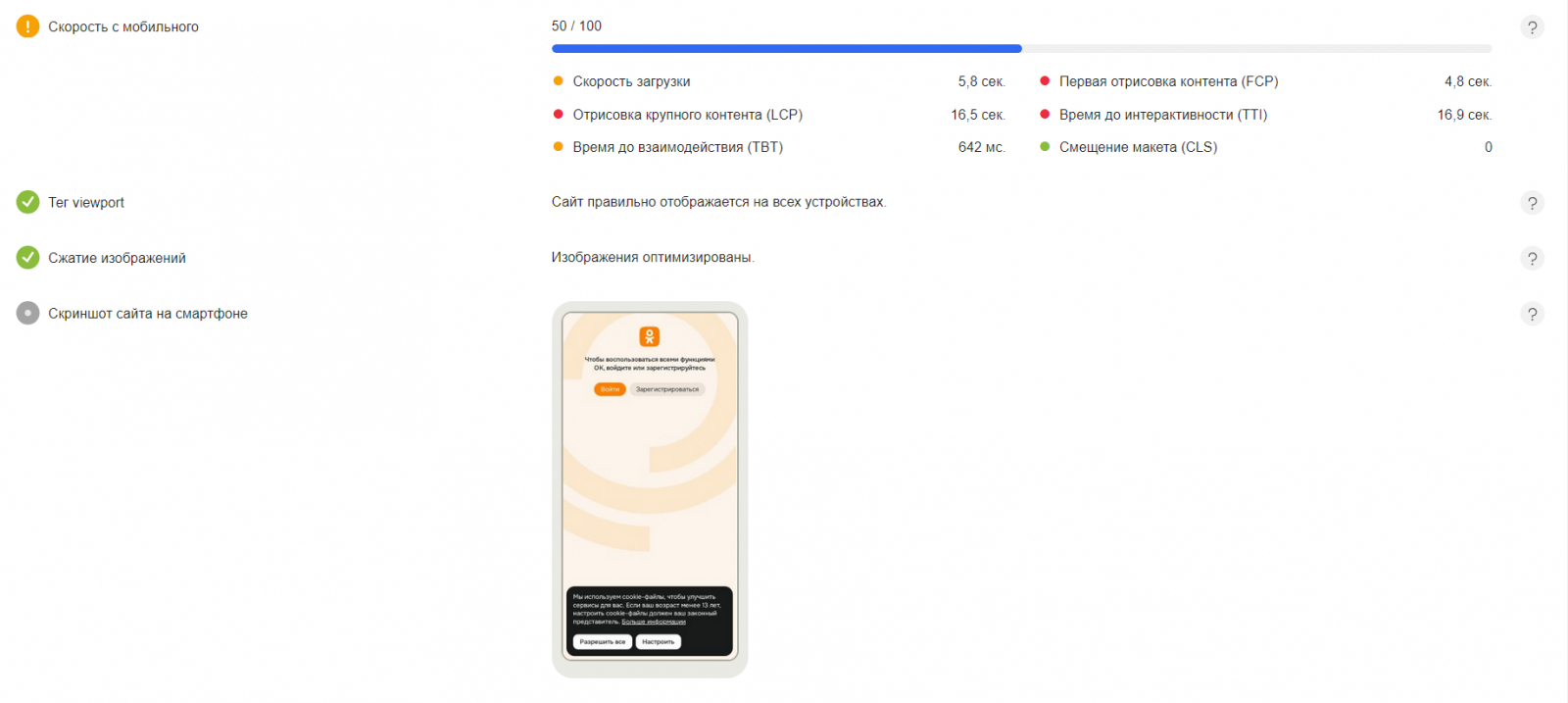 В сервисе «Анализ сайта» можно проверить, как быстро сайт работает на разных устройствах, и посмотреть на результат отрисовки мобильной версии.