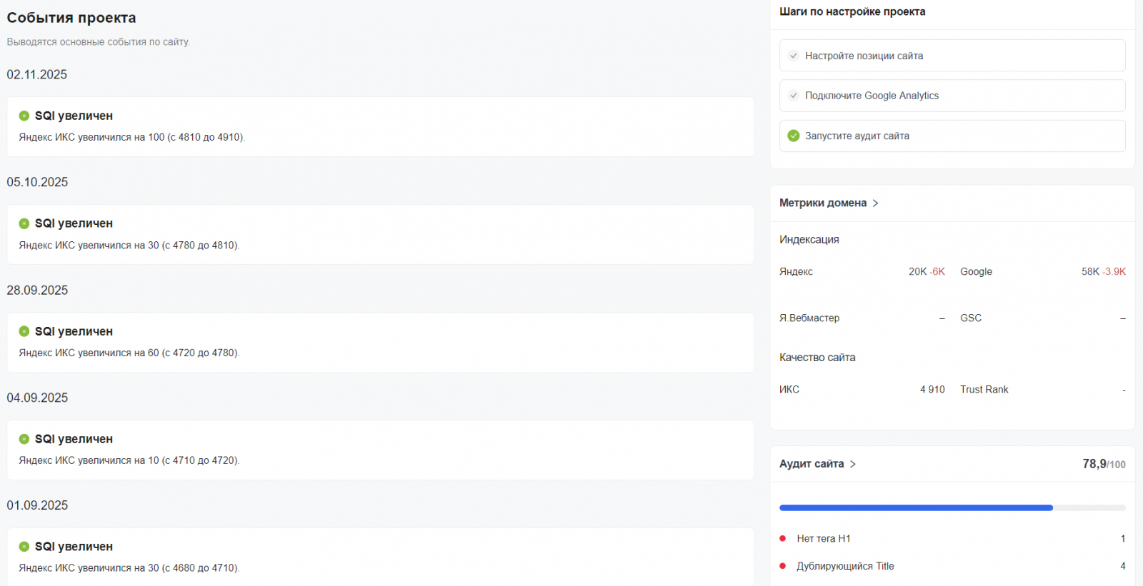 78. Ведите статистику ссылок и упоминаний. Прирост этих показателей — хороший знак, который указывает на эффективность стратегии. «Анализ сайта» показывает количество ссылок на сайт и предлагает рекомендации по улучшению динамики ссылочной массы.