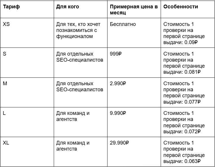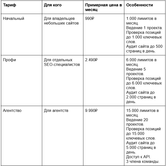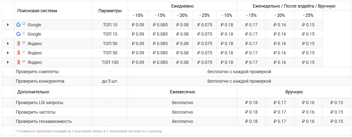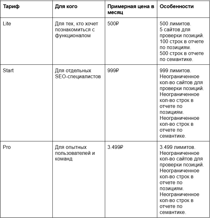 - Проверка позиций входит только в платные тарифы (но есть бесплатный инструмент для разовой проверки позиций).