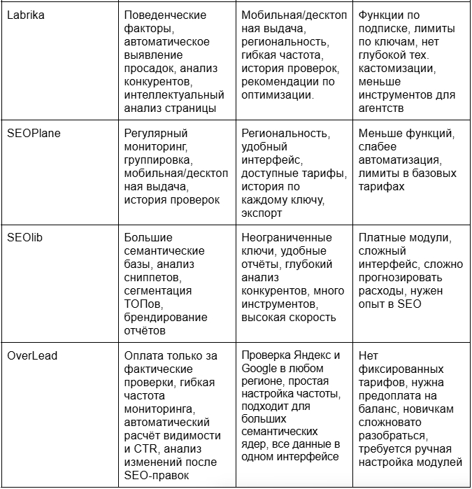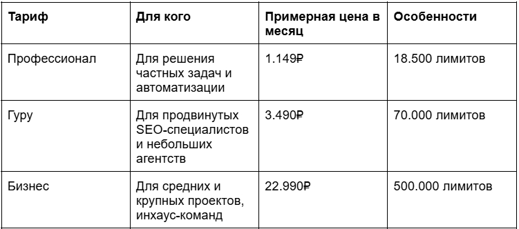 - Меньше инструментов для крупных SEO‑агентств по сравнению с нишевыми сервисами.