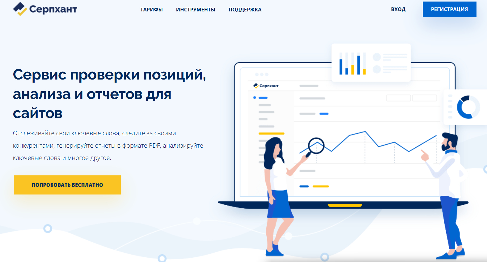 Серпхант берет на себя рутинные задачи по мониторингу сайтов и помогает лучше понимать, что происходит с видимостью проекта в поиске. Он отслеживает динамику по ключевым запросам и анализирует поведение трафика.
