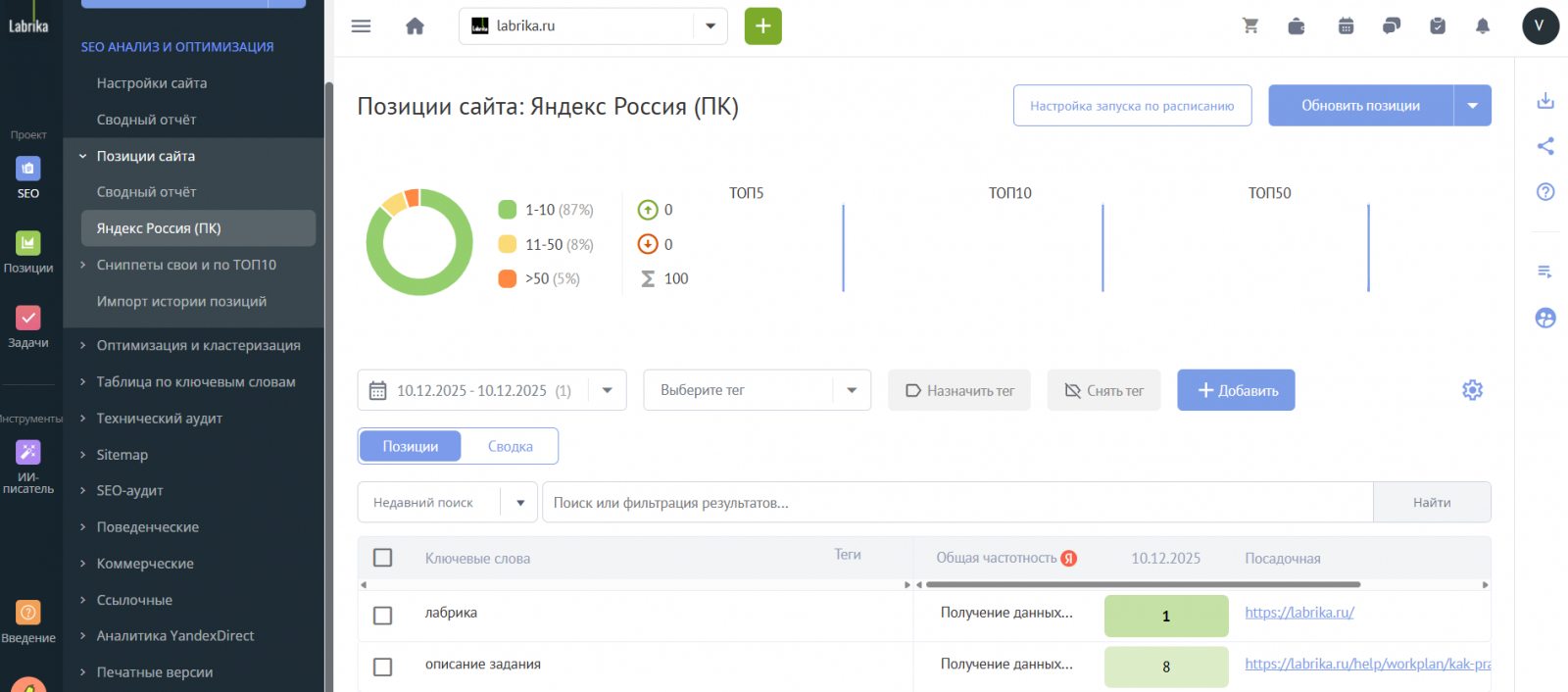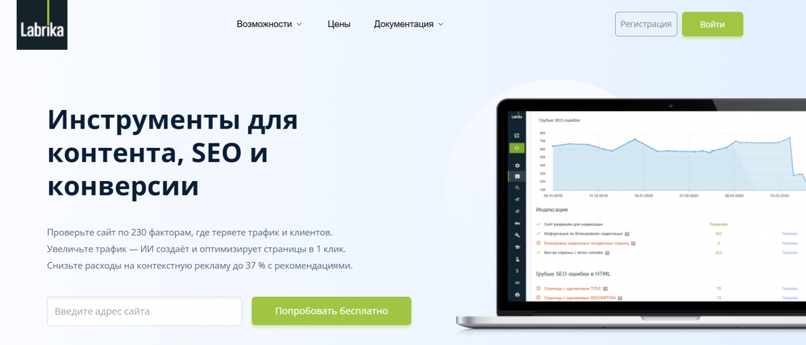 Labrika — это SEO‑платформа с умным анализом сайта, автоматическими рекомендациями и удобным мониторингом позиций. Сервис помогает получать точные данные о видимости сайта в поиске, отслеживать динамику и находить точки роста для продвижения.